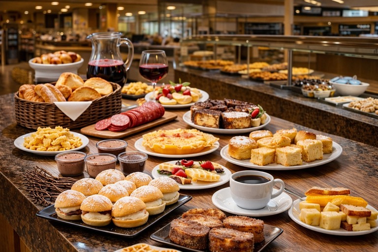 Servido diariamente no período da manhã, o buffet de café é ideal para quem quer se alimentar bem antes do trabalho, começar o dia com mais disposição ou simplesmente aproveitar um momento tranquilo logo cedo.
